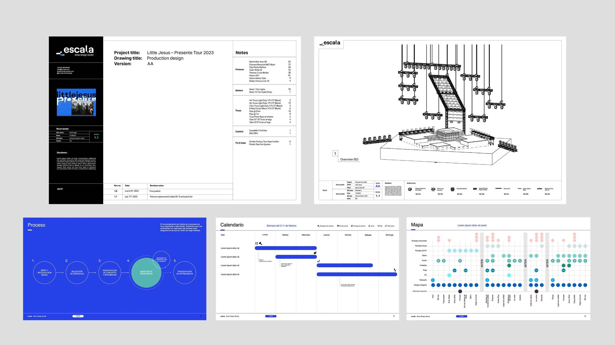 The visual identity was developed for an interdisciplinary studio specializing in the design and direction of live shows, concerts, and festivals. The central challenge was to translate the concept behind its name—Escala (Spanish for scale)—into a coherent and expressive visual system. The branding needed to convey the studio’s technical expertise and professional rigor, while also reflecting an adaptive, flexible, and constantly creative way of working across different formats and contexts.